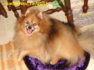 My Little Lady Sadie December 29, 1996 - December 25, 2011 Sadie was the beginning of my "Pom Habit". She was my first Pom and definitely thought she was in charge here. She was a wonderful mother and even after she was spayed, she still wanted to "mother" any puppies we had. Sadie would have loved to show, but grew just a little too big.) The only offspring that I have left of hers are her great grandson, Kodi and his daughter, Josie. I hope to keep her personality and attitude going with them. She will be missed very, very much!!! CH. Marbil's Tickled Pink Jan 4, 2001 - June 28, 2012 Tiki will be missed more than words can describe. ![]()