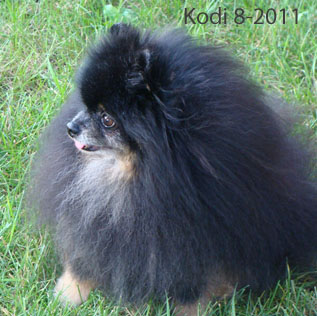 KaMaLa's Kodiak Moment Kodi is out of Ch Pom Acres Atomic Dictator (thanks Juanita for letting me use Tate!) and KaMaLa's Dancer on the Plain (Savannah). Kodi doesn't like to show which is too bad because he is very sound as well as having a beautiful coat. He has a sweet personality. Josie is his daughter out of my CH Niki.